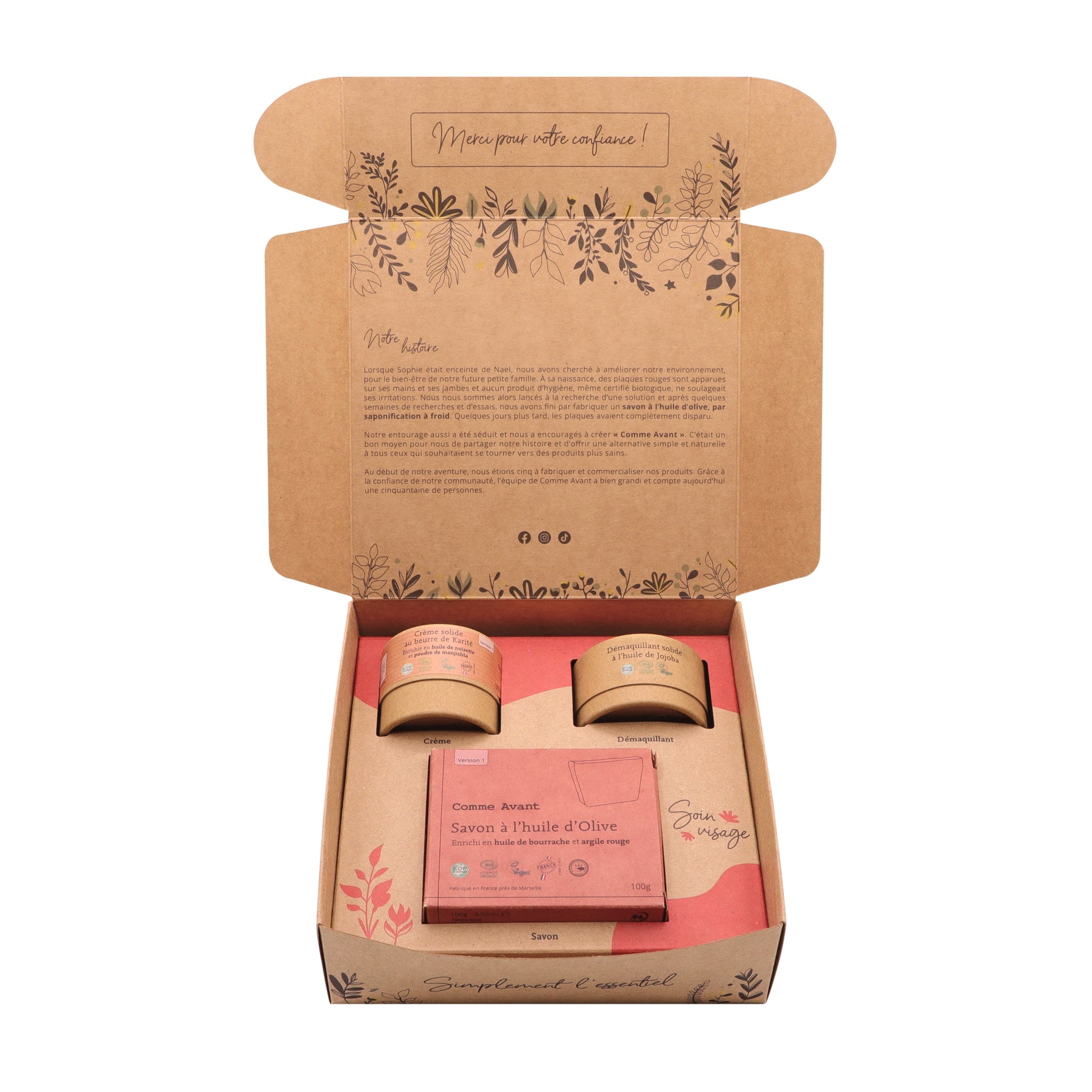 - Nous adorons ce coffret car il offre une solution complète pour une routine visage saine et écologique.